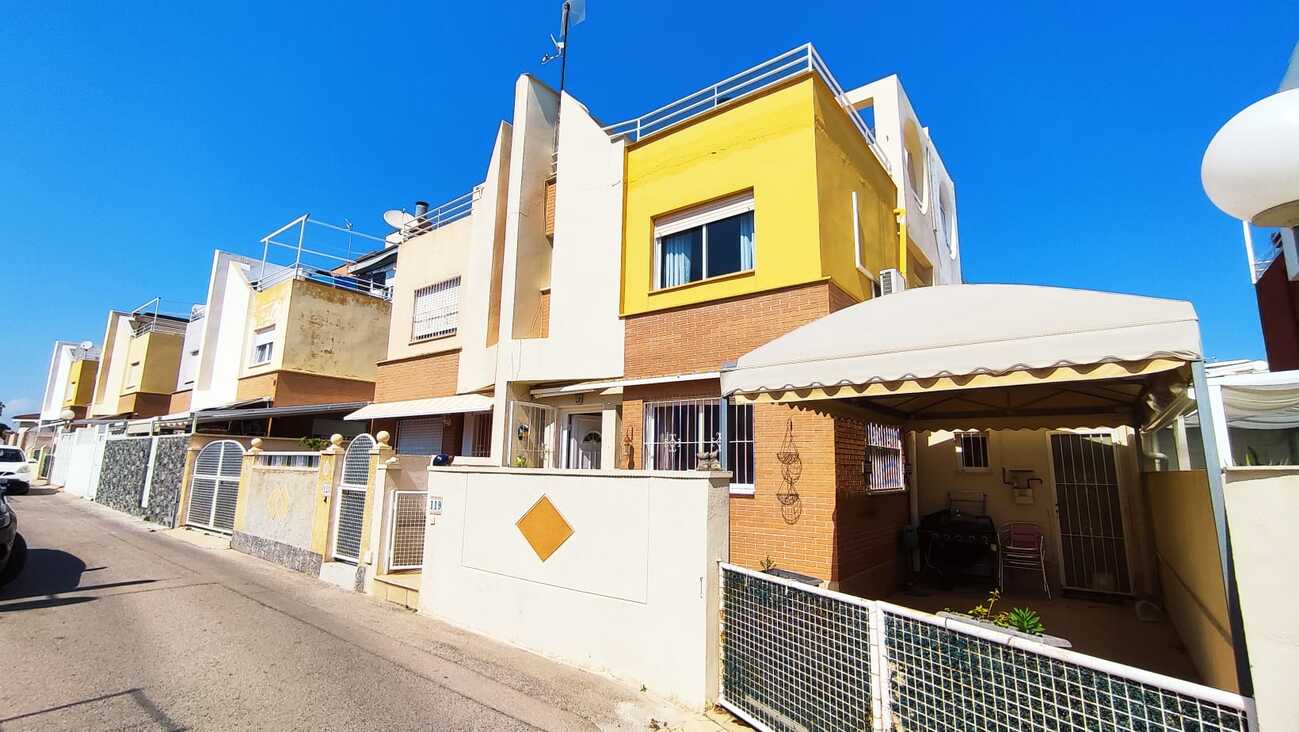 The villa itself enjoys a favorable South-Facing orientation, bathing the property in sunlight throughout the day. Outdoor living is beautifully accommodated with an expansive roof solarium as well as a generously sized front terrace. This outdoor space features a practical toldo (awning) system, allowing you to tailor your experience - whether you prefer soaking up the Mediterranean sun or relaxing in cooling shade. Residents also have privileged access to a magnificent communal pool.